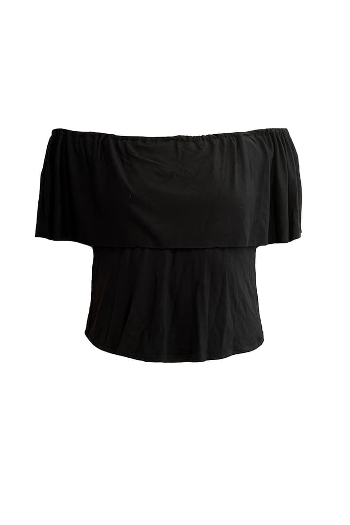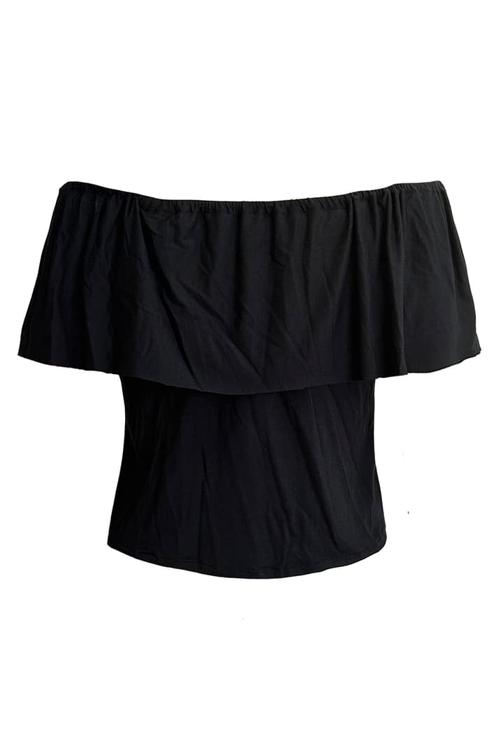 Jersey color negro de punto de bambú , muy cómodo y fresco, con volante en el escote.