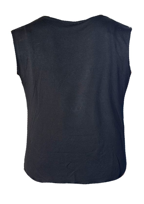 Jersey sin mangas y largo por la cintura. Muy cómodo y elegante, con escote cuadrado, de punto de bambú.