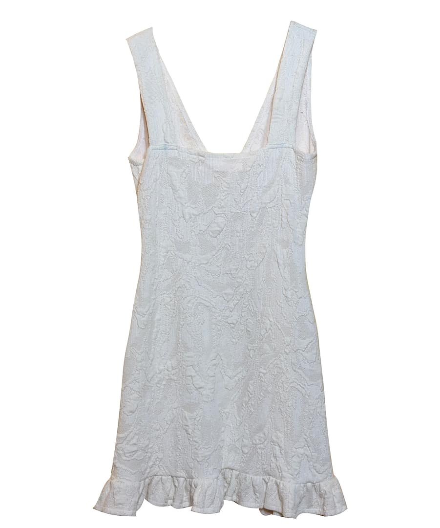Vestido de punto blanco de algodón con textura de círculos y con volante en el bajo, muy cómodo y elegante.
