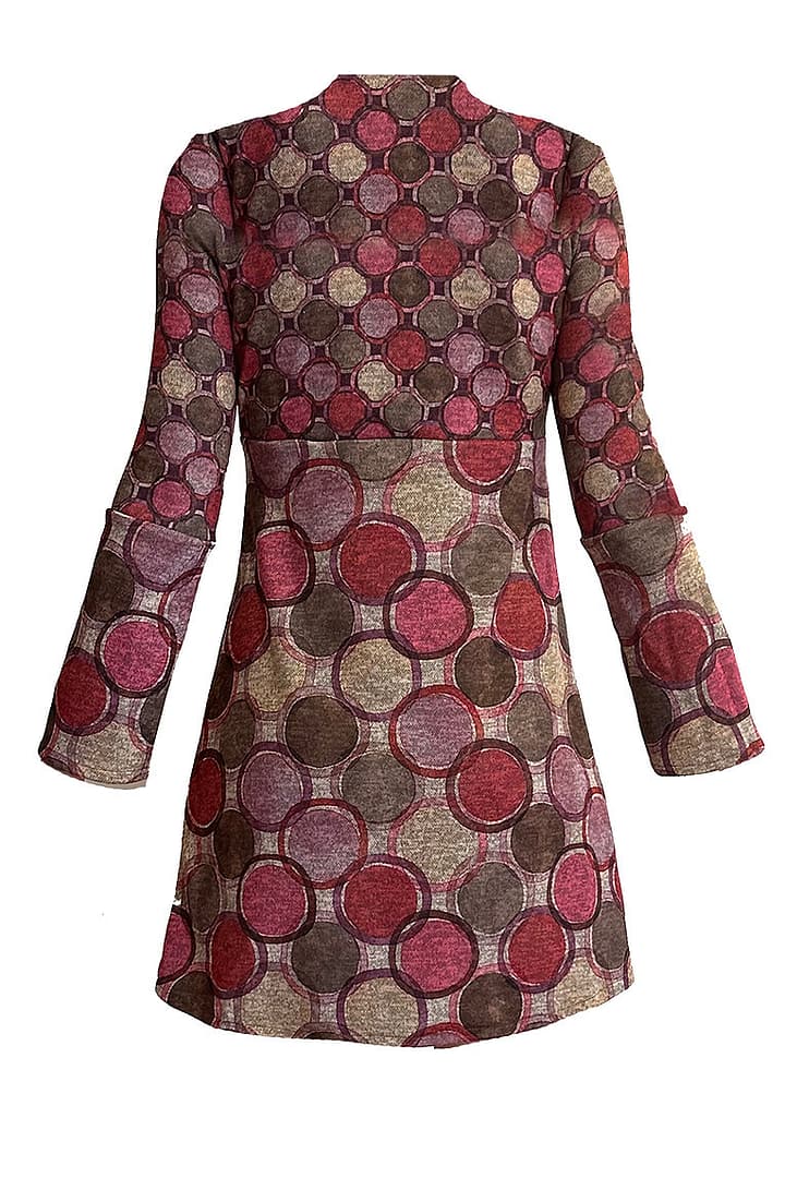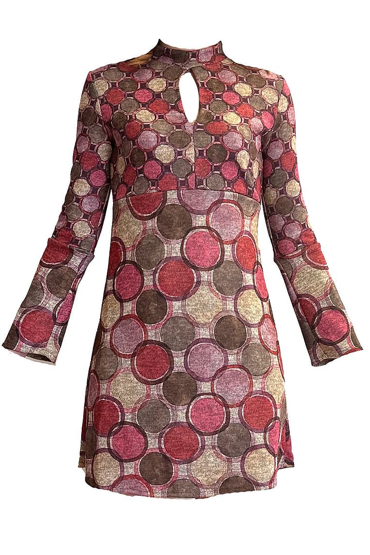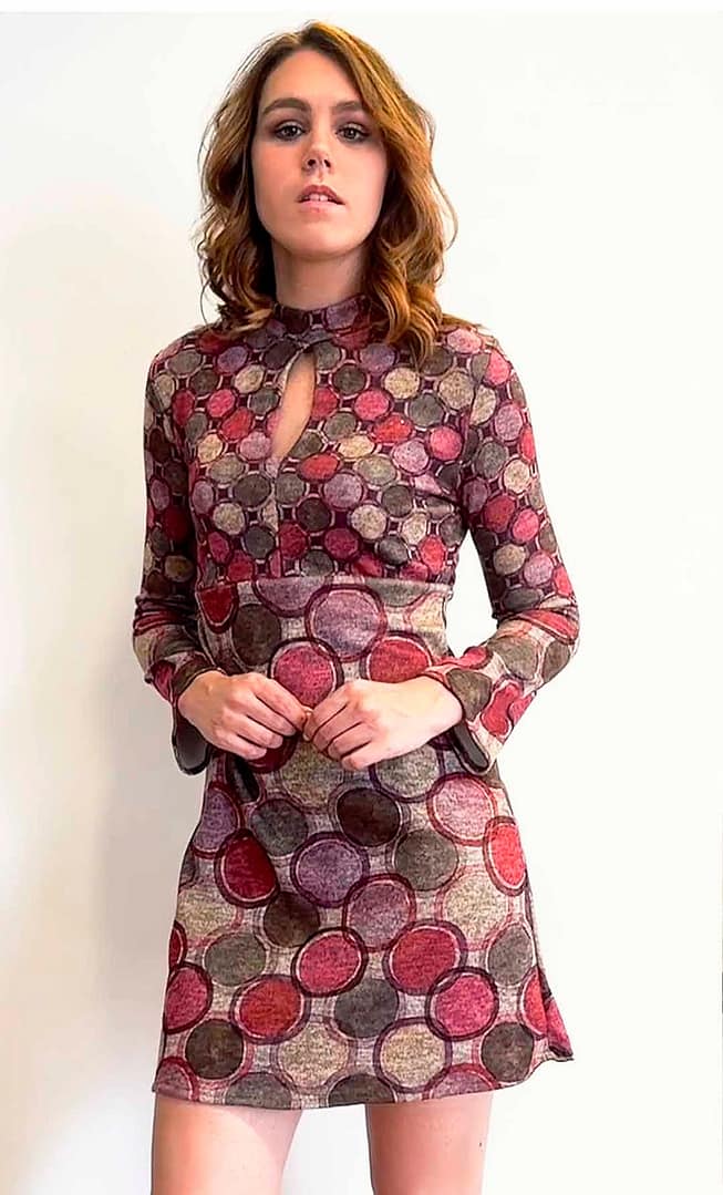 Vestido estampado de topos pequeños y con topos grandes en la parte de abajo, de punto elastico un poco grueso, ideal para invierno.